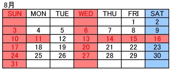 8月休診(08/10~08/11)及びお盆休診(08/13~08/17)のお知らせ