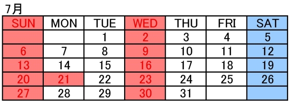 7月休診(07/20~07/21)のお知らせ