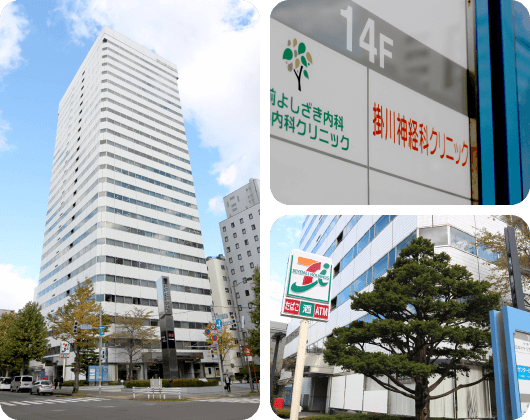 JR札幌駅、地下鉄札幌駅から徒歩5分のオフィスビル内にある、通いやすいメンタルクリニックです。