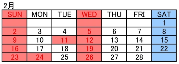 祝日のために、暦どおりに令和7年2月11日(火)(建国記念の日)、同年2月24日(月)(振替休日)は休診いたします。